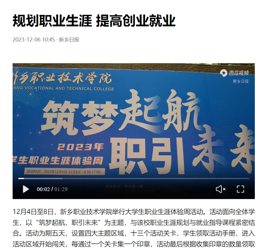 Copyright  © 新乡职业技术学院 豫ICP备10007304号 豫公网安备41070202000179号     地址:河南省新乡市经济技术开发区经三路六号 联系电话:0373-3720000 传真号码:0373-3721111