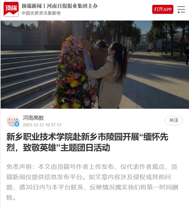 【顶端新闻】新乡职业技术学院赴新乡市陵园开展“缅怀先烈,致敬英雄”主题团日活动