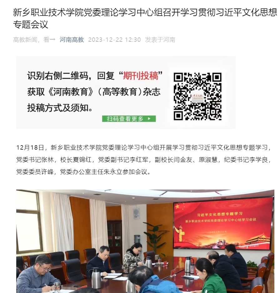 【河南高教】新乡职业技术学院党委理论学习中心组召开学习贯彻习近平文化思想专题会议