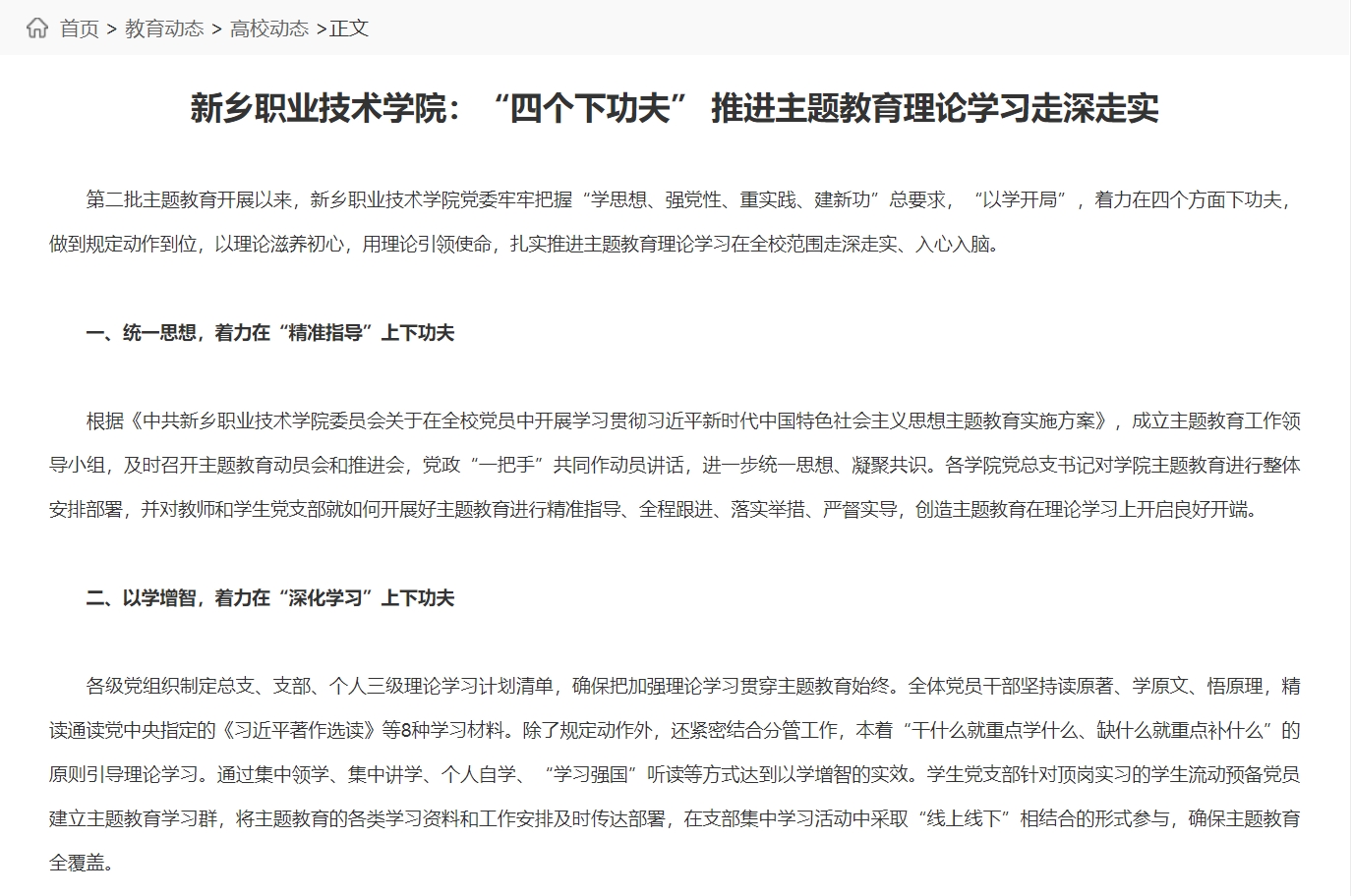 【河南省教育厅】新乡职业技术学院:“四个下功夫” 推进主题教育理论学习走深走实