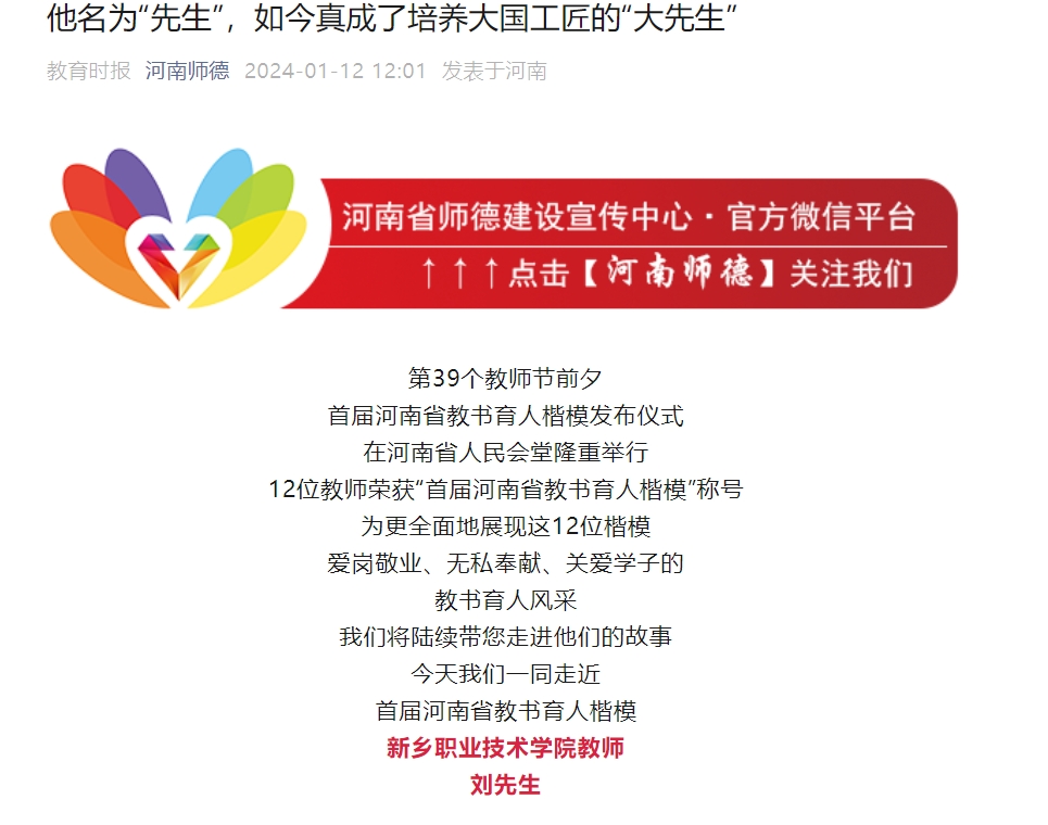 【河南师德】他名为“先生”,如今真成了培养大国工匠的“大先生”
