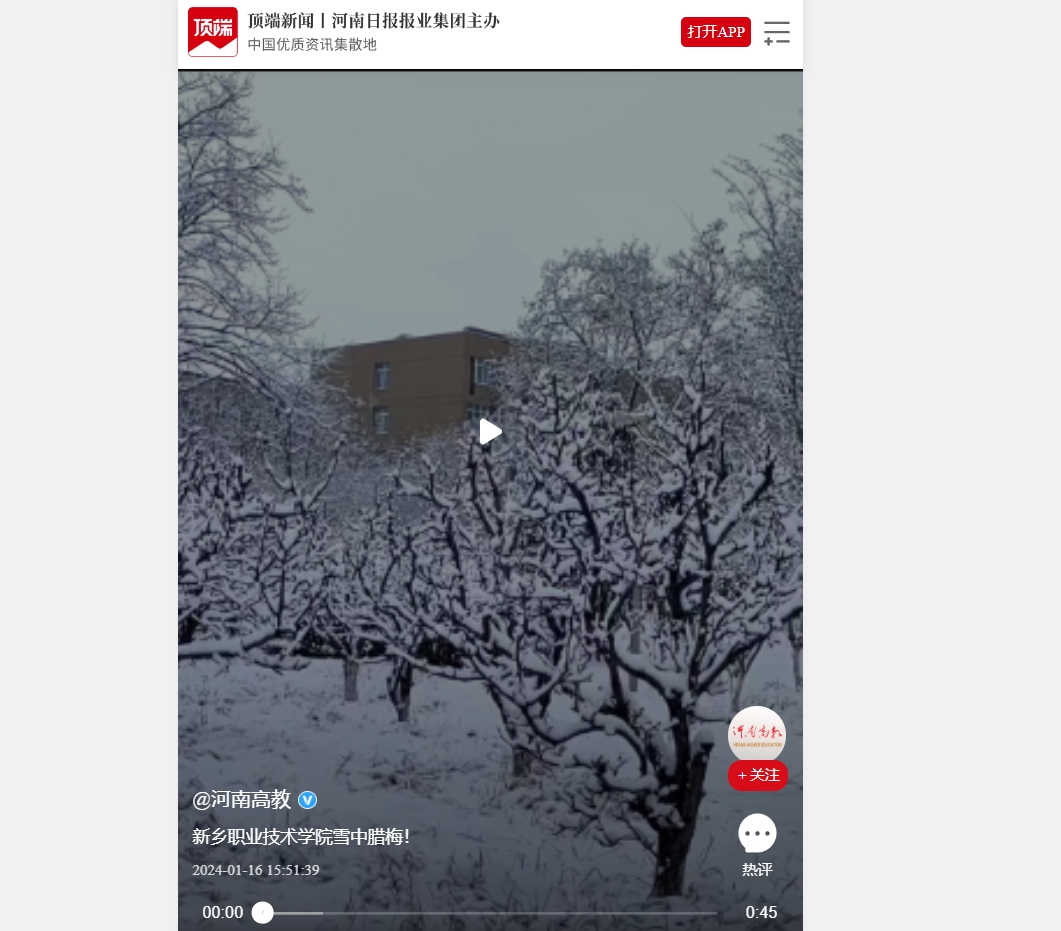 【顶端新闻】新乡职业技术学院雪中腊梅!