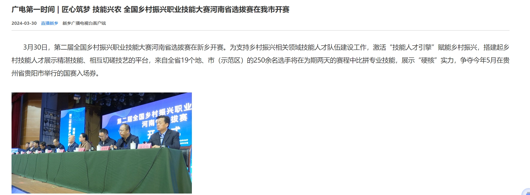 【直播新乡】广电第一时间 | 匠心筑梦 技能兴农 全国乡村振兴职业技能大赛河南省选拔赛在我市开赛