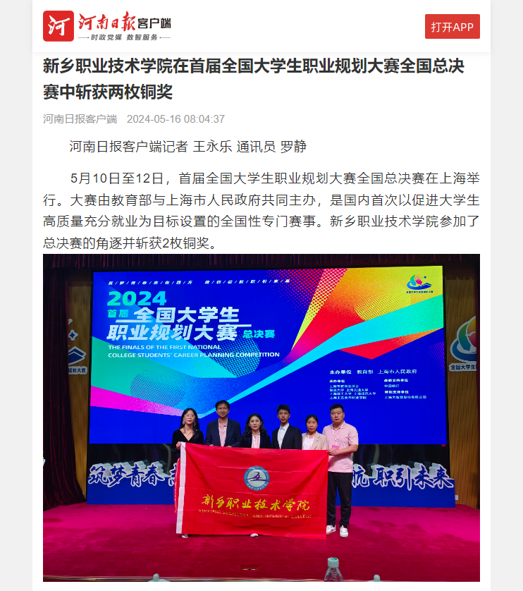 【河南日报】新乡职业技术学院在首届全国大学生职业规划大赛全国总决赛中斩获两枚铜奖