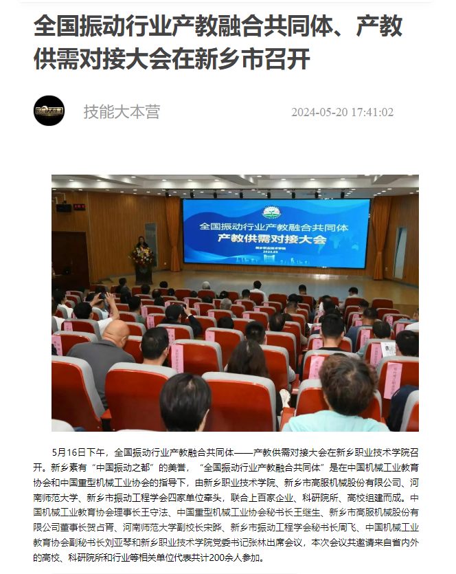 【大象新闻】全国振动行业产教融合共同体、产教供需对接大会在新乡市召开