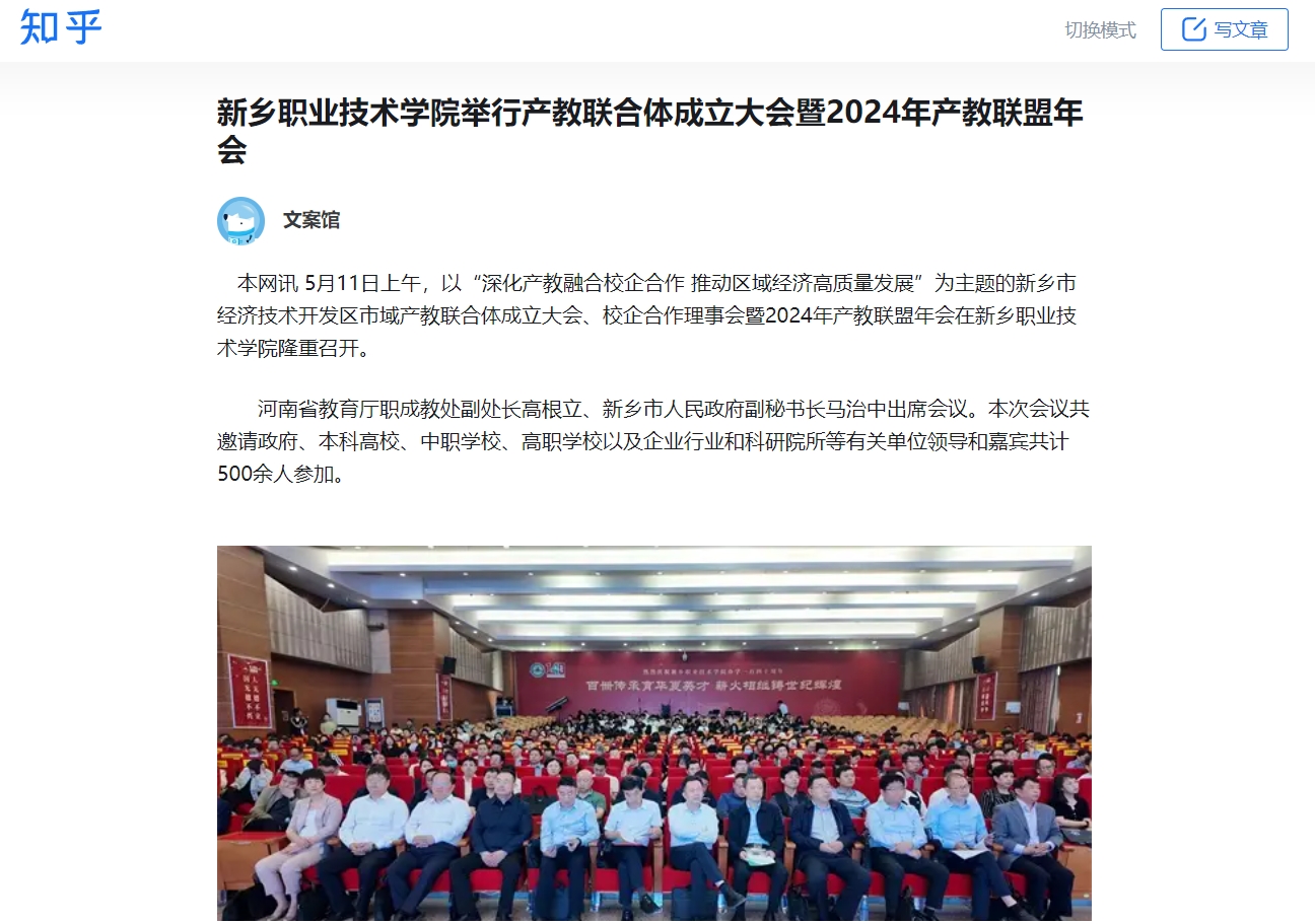 【知乎】新乡职业技术学院举行产教联合体成立大会暨2024年产教联盟年会