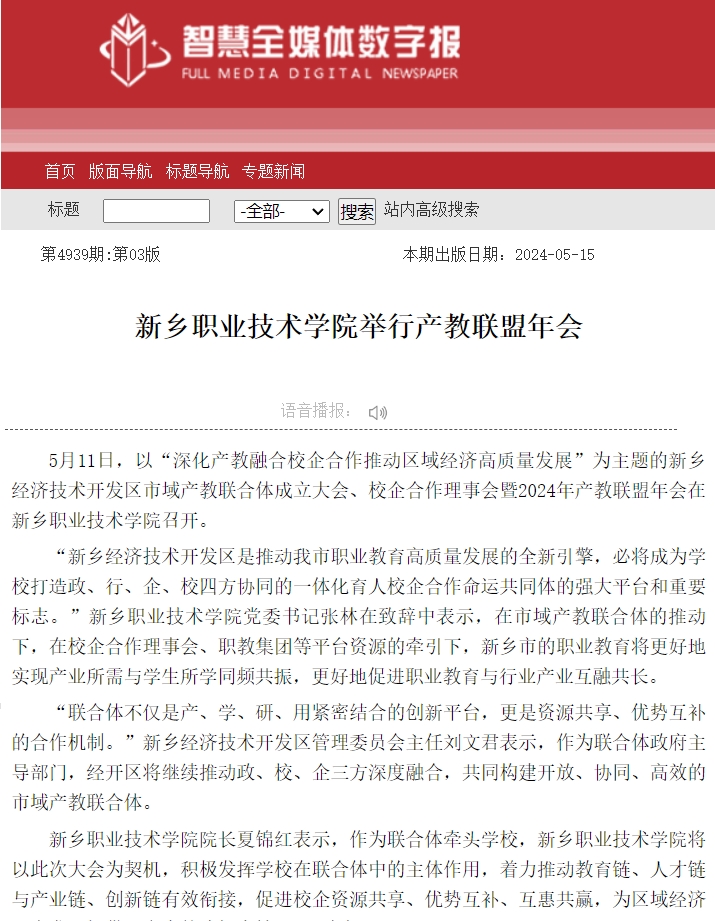 【河南日报】新乡职业技术学院举行产教联盟年会