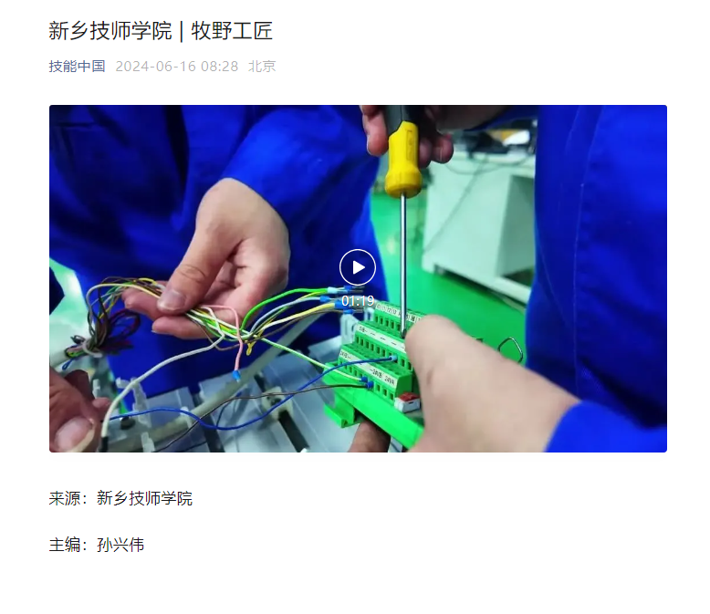 【技能中国】新乡技师学院 | 牧野工匠
