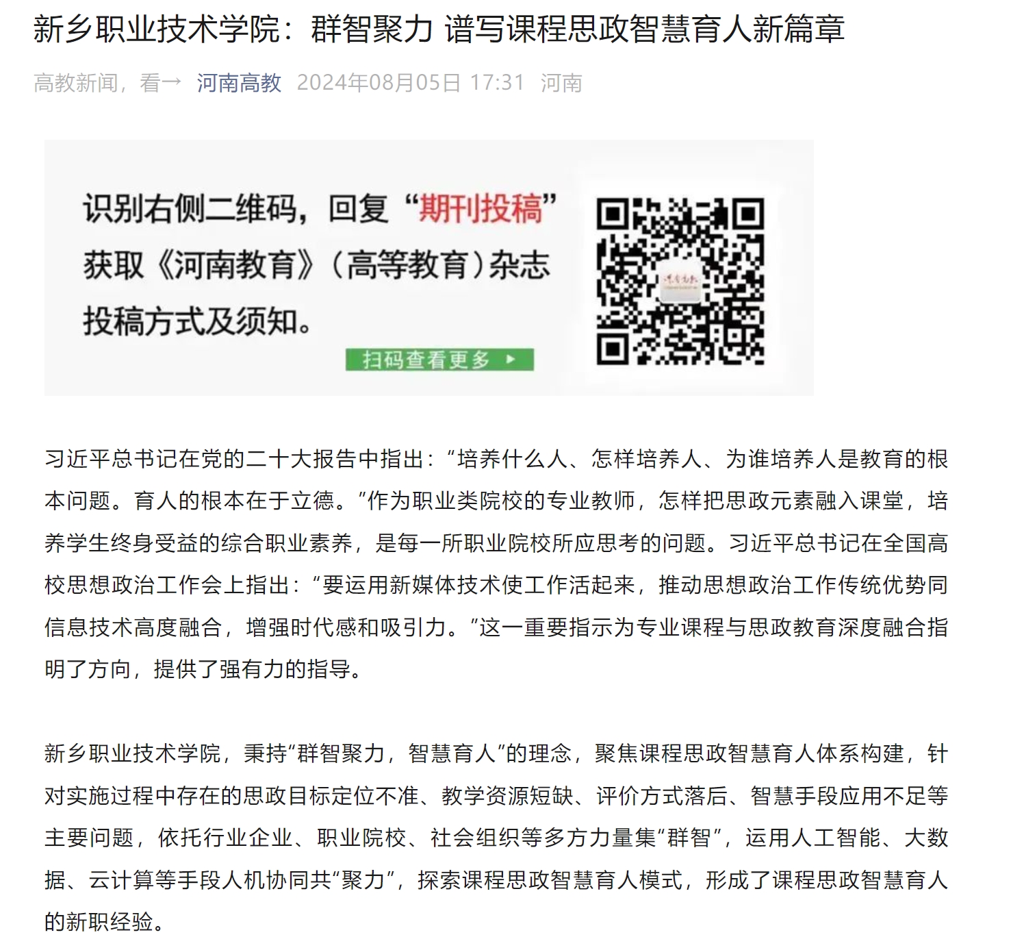 【河南高教】新乡职业技术学院:群智聚力 谱写课程思政智慧育人新篇章