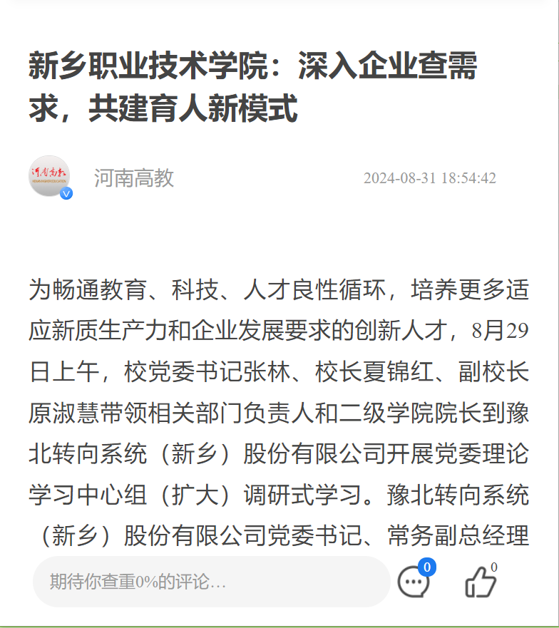 【河南高教】新乡职业技术学院:深入企业查需求,共建育人新模式