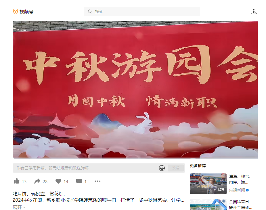 【新乡日报】2024中秋在即,新乡职业技术学院建筑系的师生们,打造了一场中秋游艺会,让学生们牢记中国传统文化,过好中国节。
