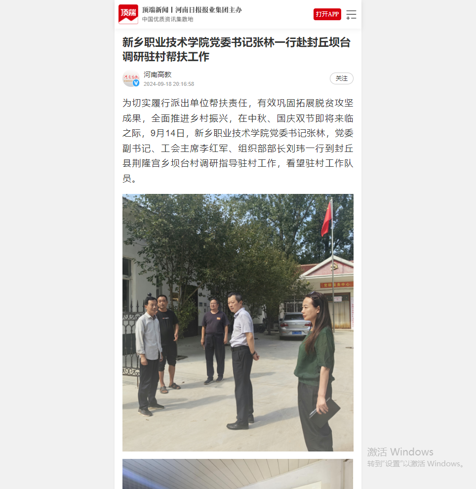 【河南高教】新乡职业技术学院党委书记张林一行赴封丘坝台调研驻村帮扶工作