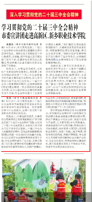 【新乡日报】学习贯彻党的二十届三中全会精神市委宣讲团走进高新区