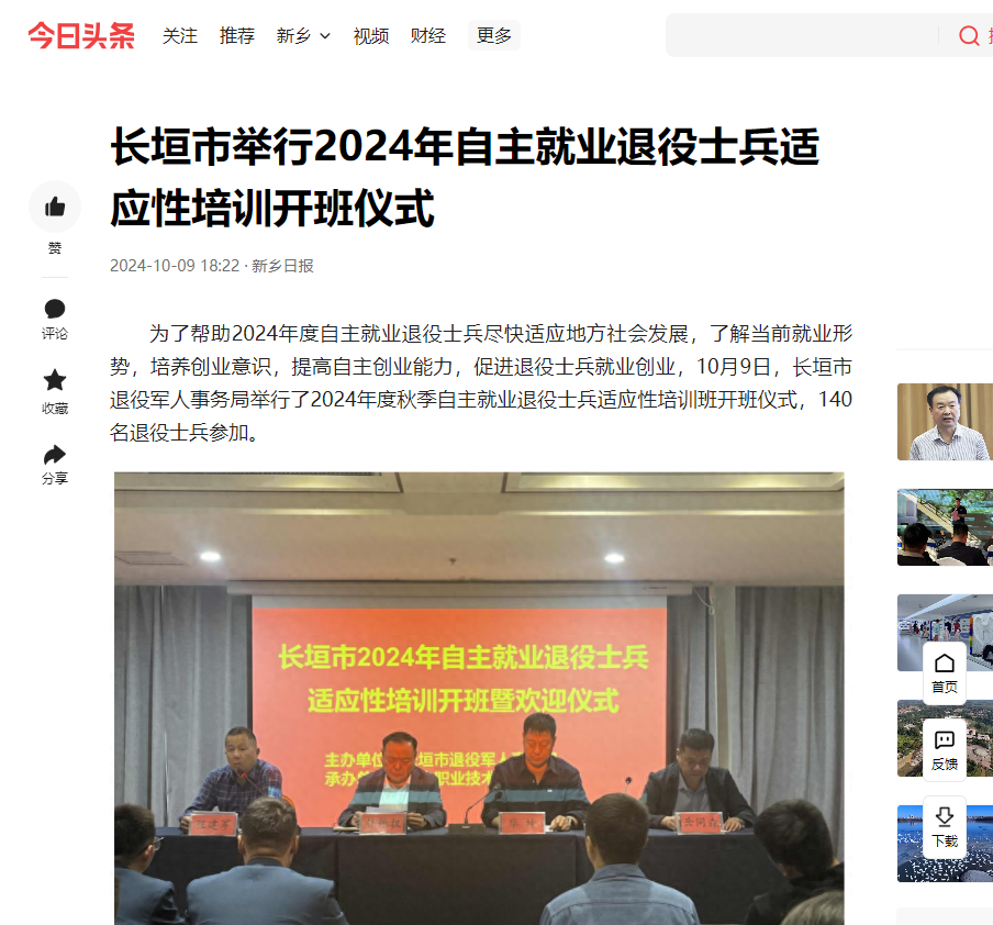 【今日头条】长垣市举行2024年自主就业退役士兵适应性培训开班仪式