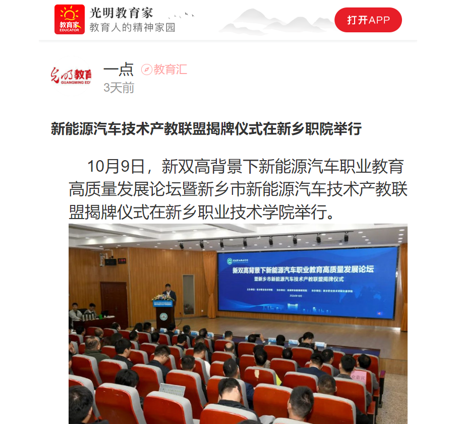 【光明教育家】新能源汽车技术产教联盟揭牌仪式在新乡职院举行