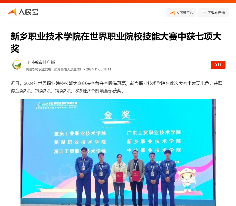 【人民号】新乡职业技术学院在世界职业院校技能大赛中获七项大奖