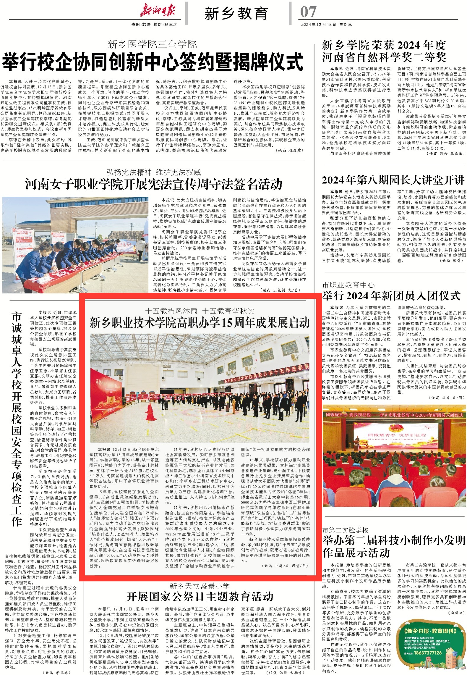 【新乡日报】新乡职业技术学院高职办学15周年成果展启动