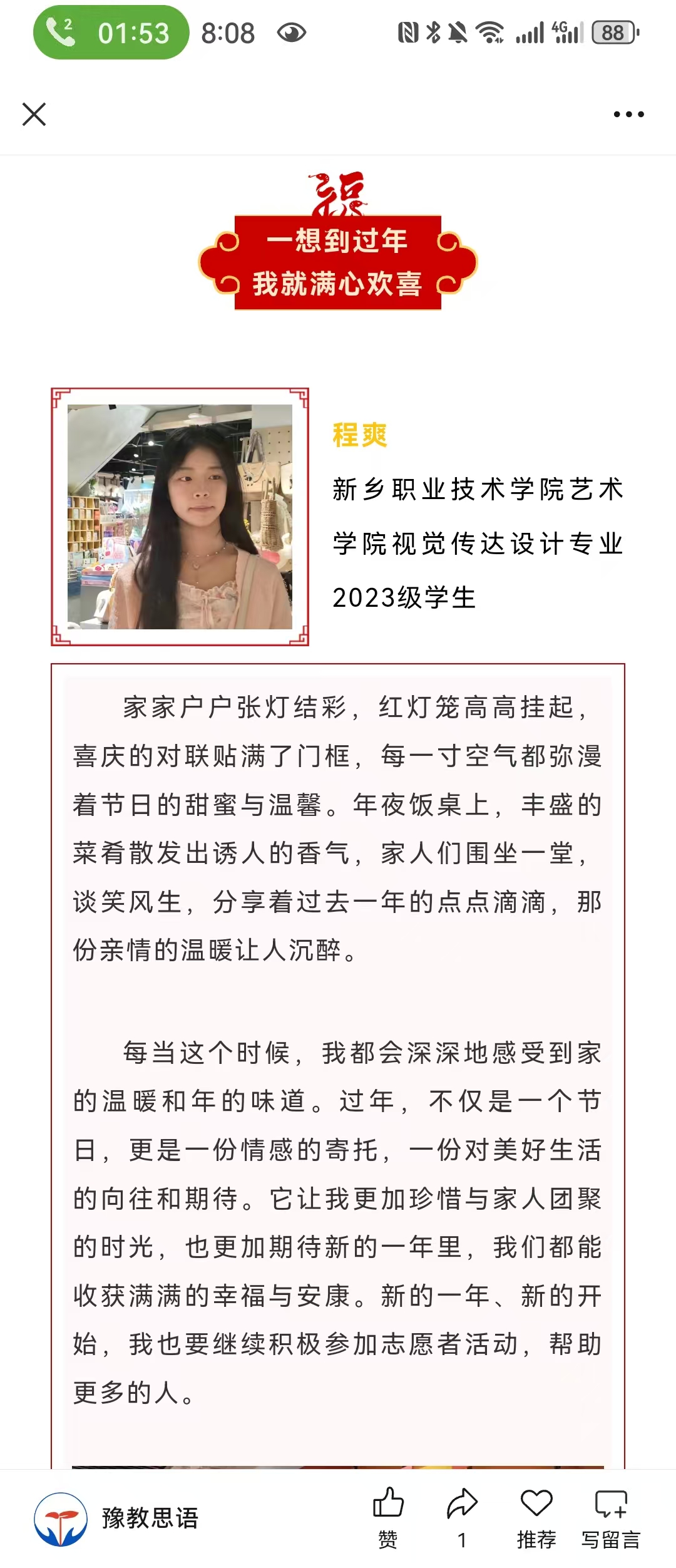 【豫教思语】青年说 | 一想到过年,我就……