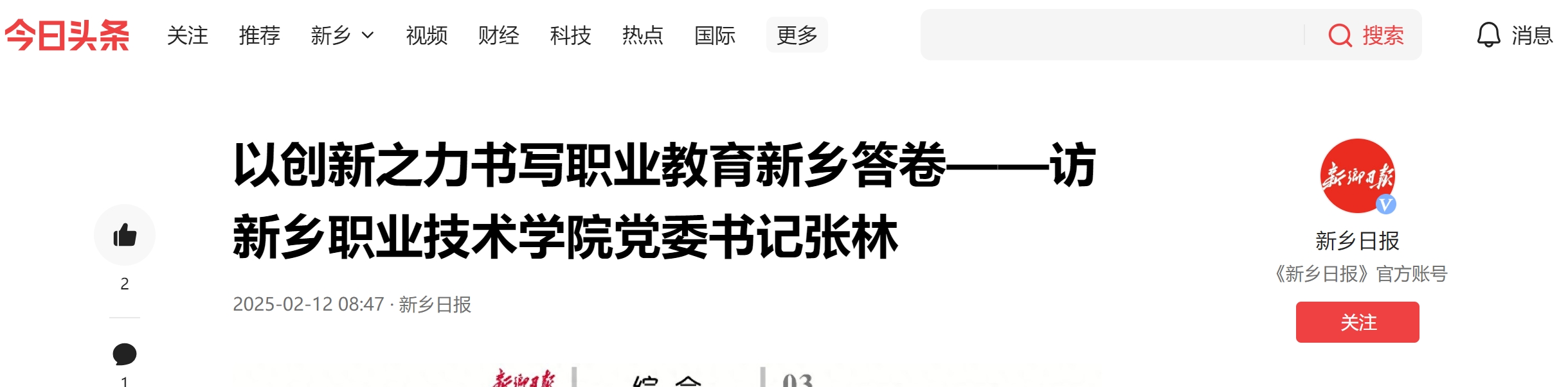 【今日头条】以创新之力书写职业教育新乡答卷——访新乡职业技术学院党委书记张林