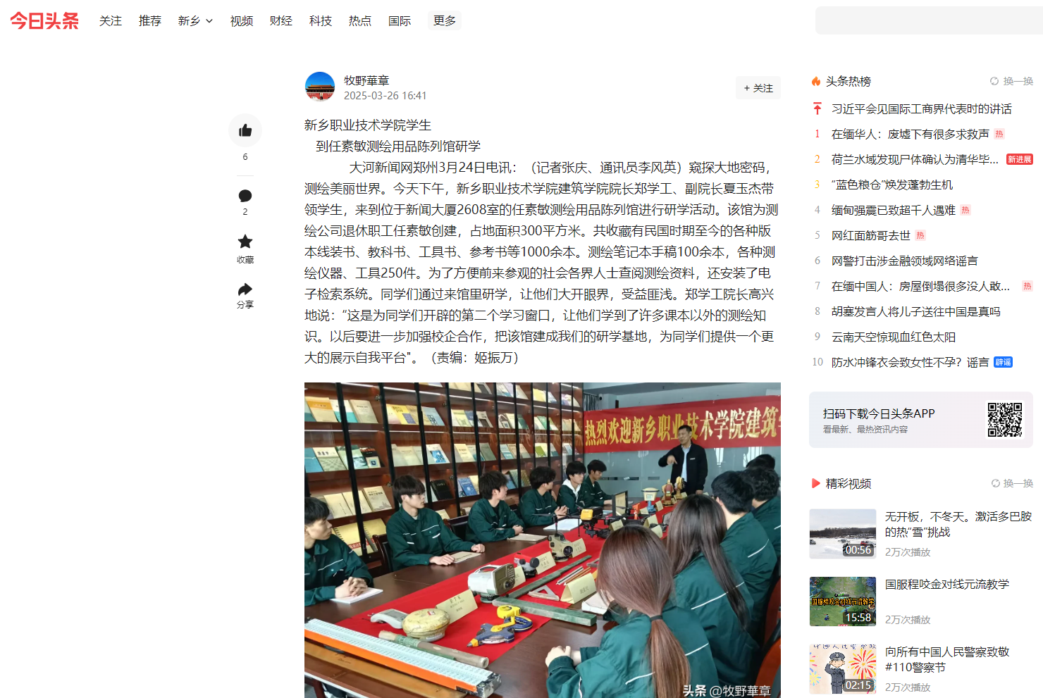 【今日头条】新乡职业技术学院学生到任素敏测绘用品陈列馆研学