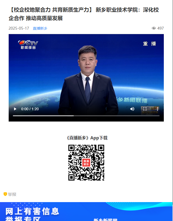 【直播新乡】【校企校地聚合力 共育新质生产力】 新乡职业技术学院:深化校企合作 推动高质量发展