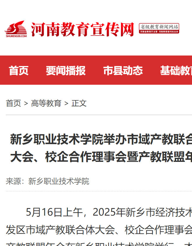 【河南教育宣传网】新乡职业技术学院举办市域产教联合体大会、校企合作理事会暨产教联盟年会