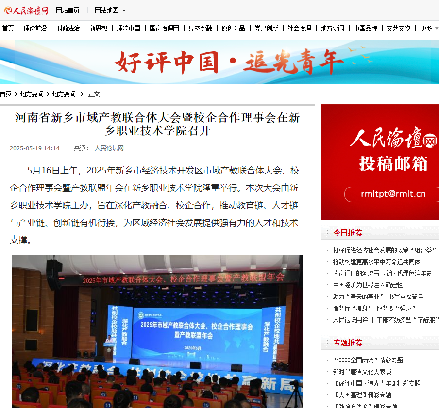 【人民论坛网】河南省新乡市域产教联合体大会暨校企合作理事会在新乡职业技术学院召开