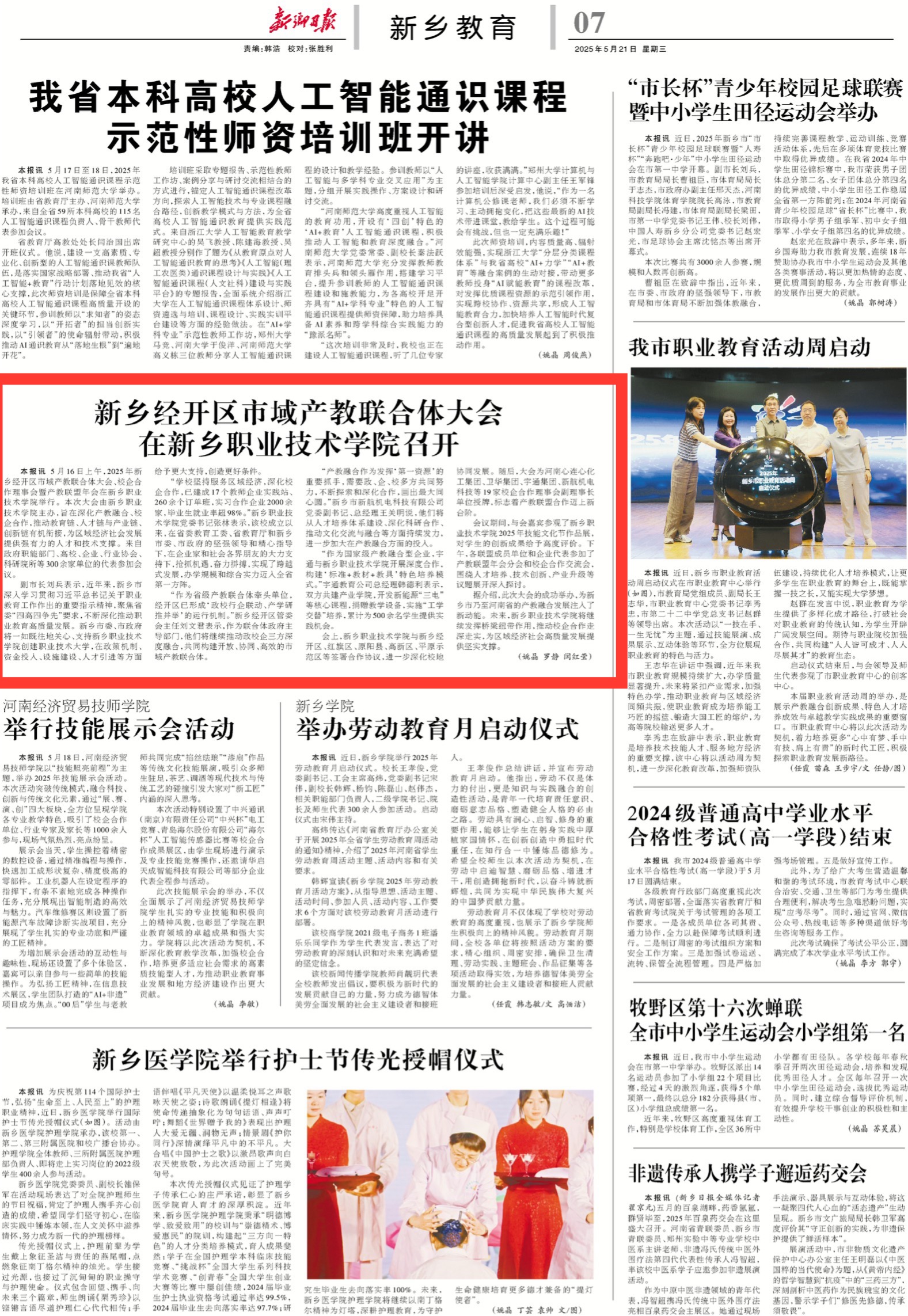 【新乡日报】新乡经开区市城产教联合体大会在新乡职业技术学院召开