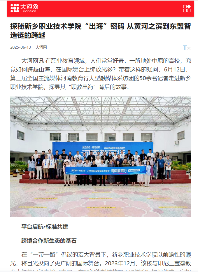 【大河网】探秘新乡职业技术学院“出海”密码 从黄河之滨到东盟智造链的跨越