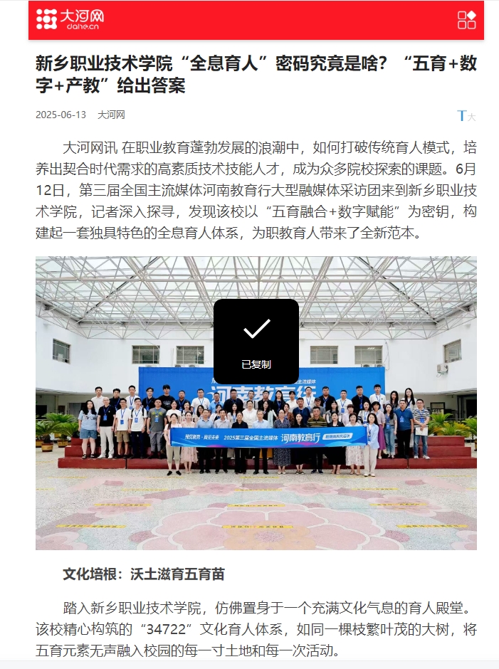 【大河网】新乡职业技术学院“全息育人”密码究竟是啥?“五育+数字+产教”给出答案