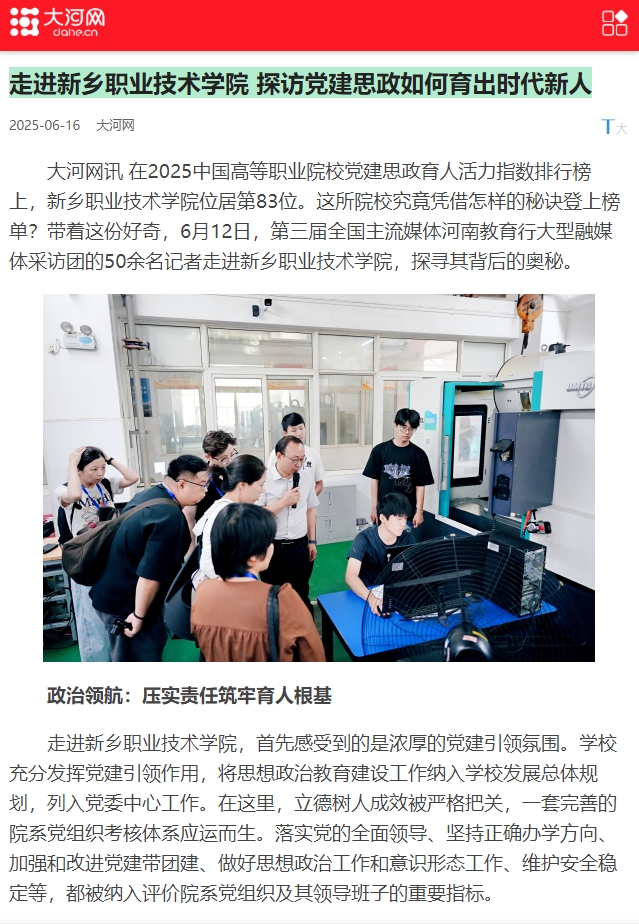 【大河网】走进新乡职业技术学院 探访党建思政如何育出时代新人