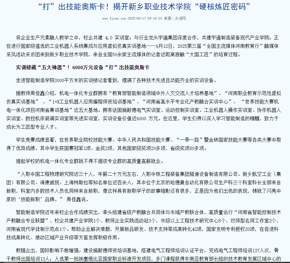 【东南网】“打”出技能奥斯卡!揭开新乡职业技术学院“硬核炼匠密码”