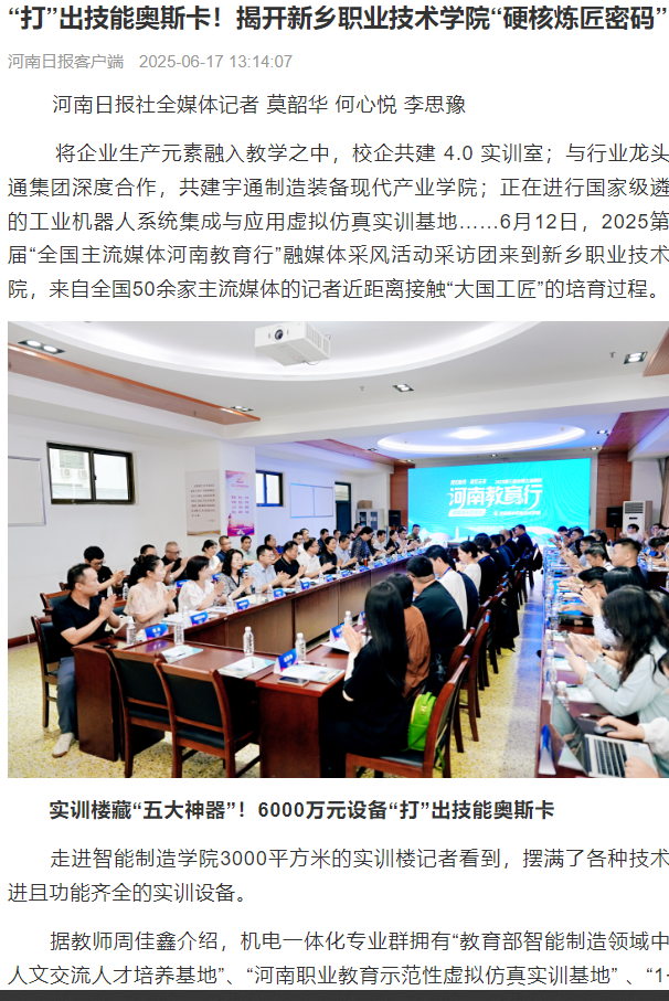 【河南日报】“打”出技能奥斯卡!揭开新乡职业技术学院“硬核炼匠密码”
