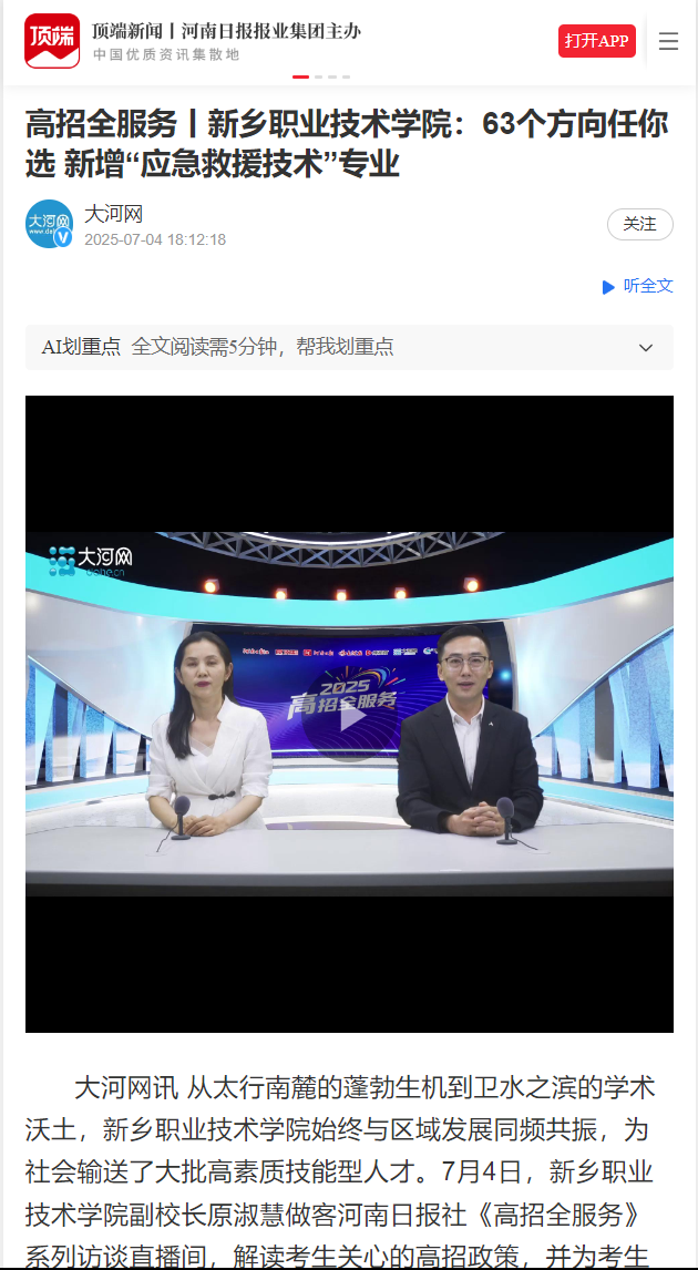 【大河网】高招全服务丨新乡职业技术学院:63个方向任你选 新增“应急救援技术”专业