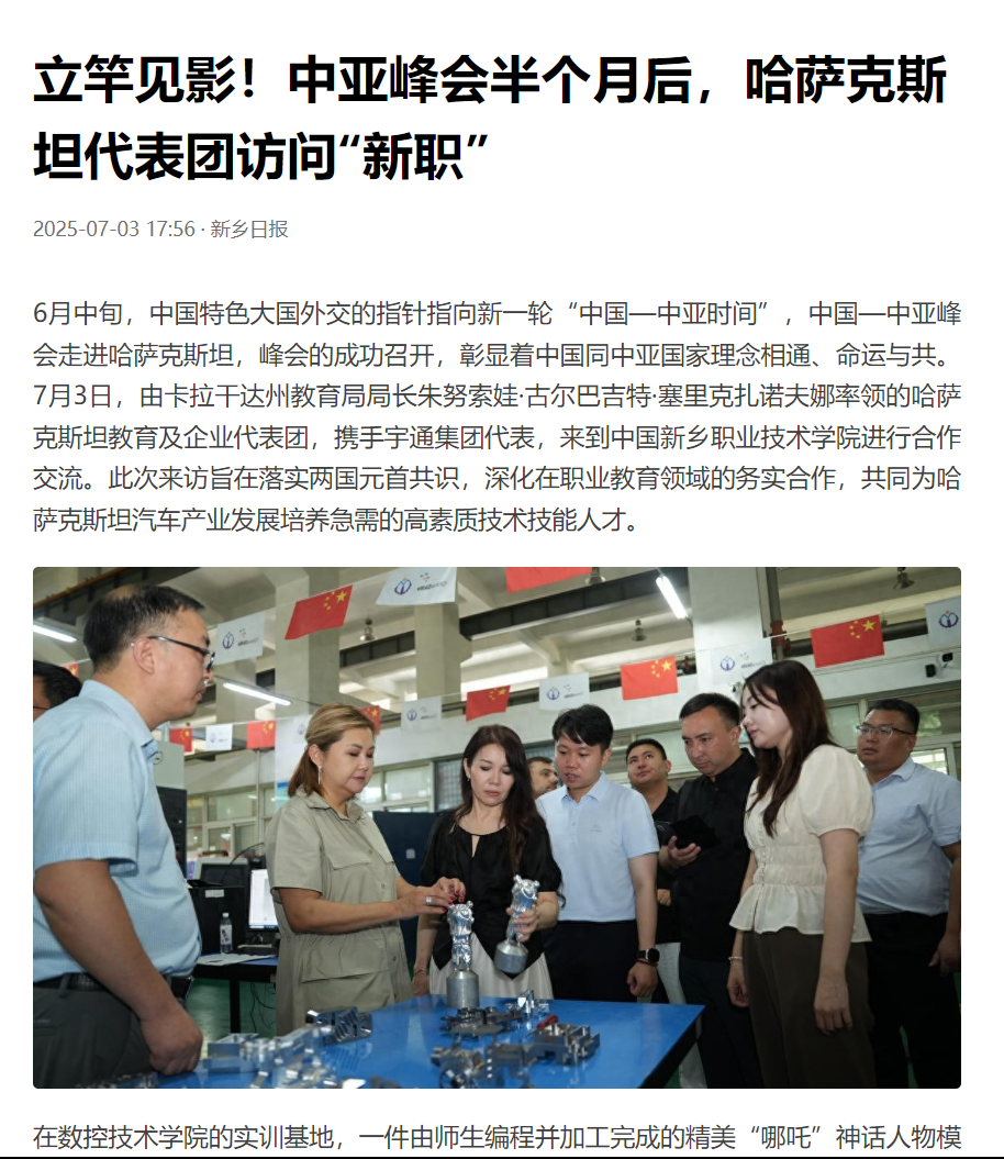 【新乡日报】立竿见影!中亚峰会半个月后,哈萨克斯坦代表团访问“新职”