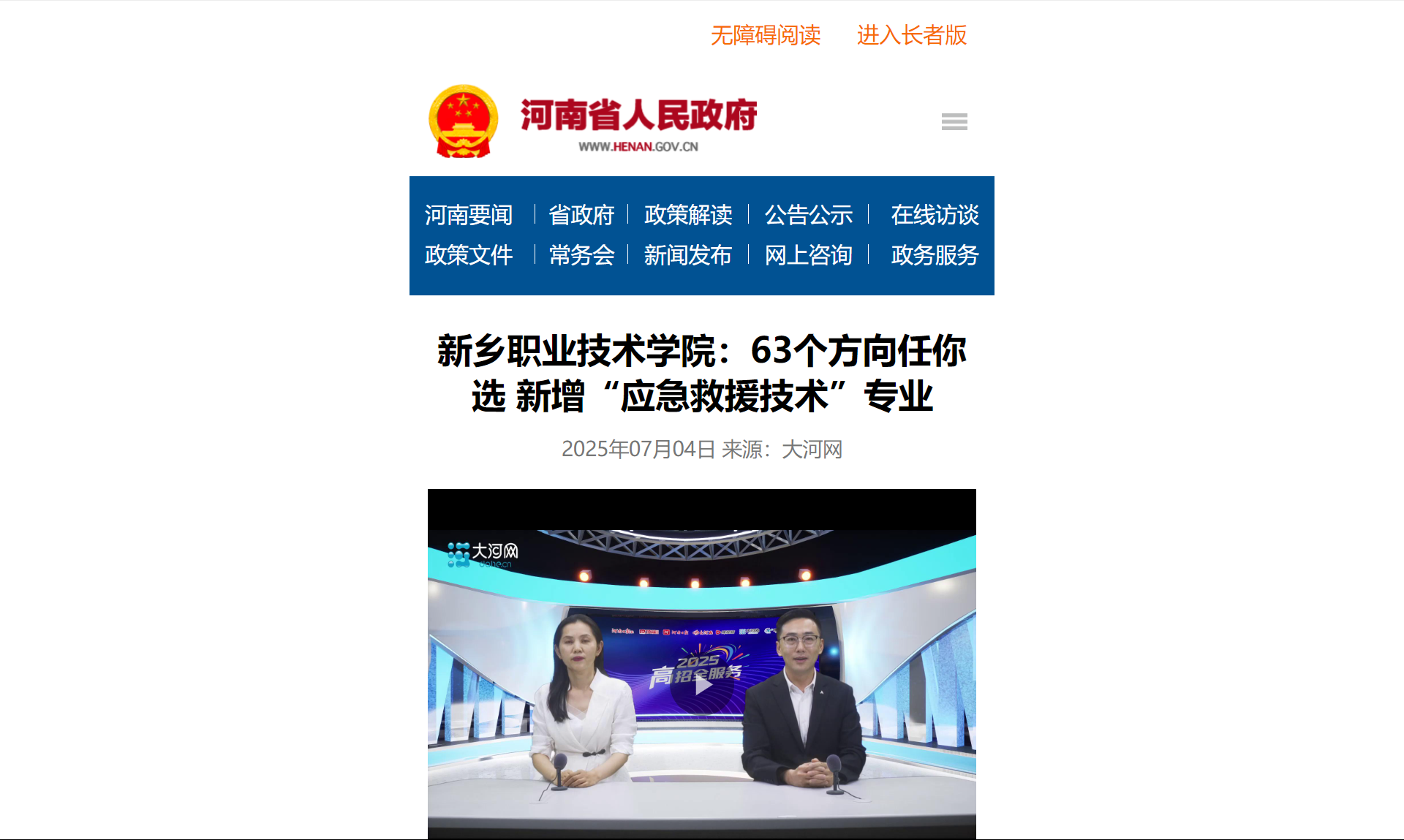 【河南省人民政府】新乡职业技术学院:63个方向任你选 新增“应急救援技术”专业