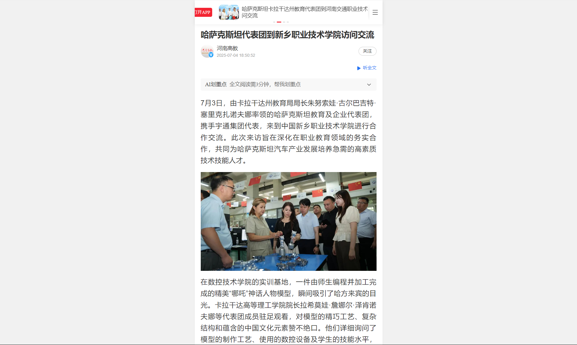 【顶端新闻】哈萨克斯坦代表团到新乡职业技术学院访问交流