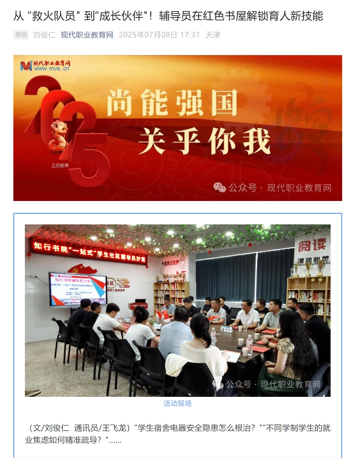 【现代职业教育网】从 “救火队员" 到“成长伙伴"!辅导员在红色书屋解锁育人新技能