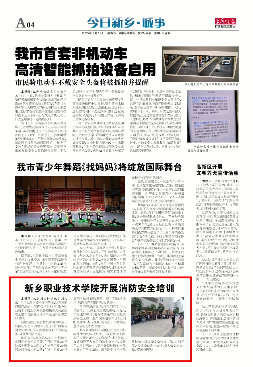 【平原晚报】新乡职业技术学院开展消防培训