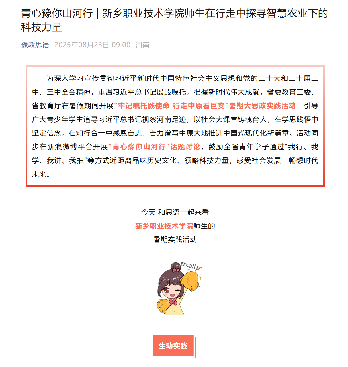 【豫教思语】青心豫你山河行 | 新乡职业技术学院师生在行走中探寻智慧农业下的科技力量