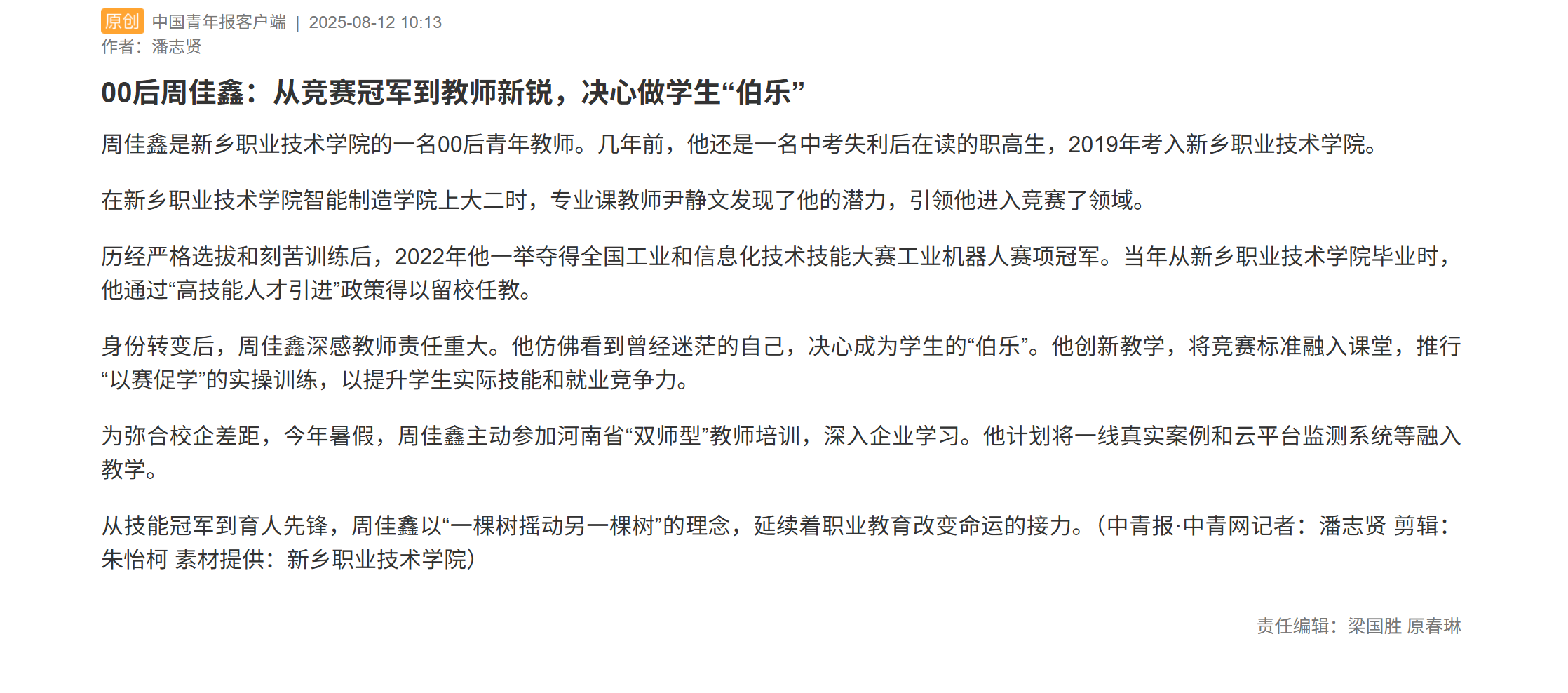 00后周佳鑫:从竞赛冠军到教师新锐,决心做学生“伯乐”