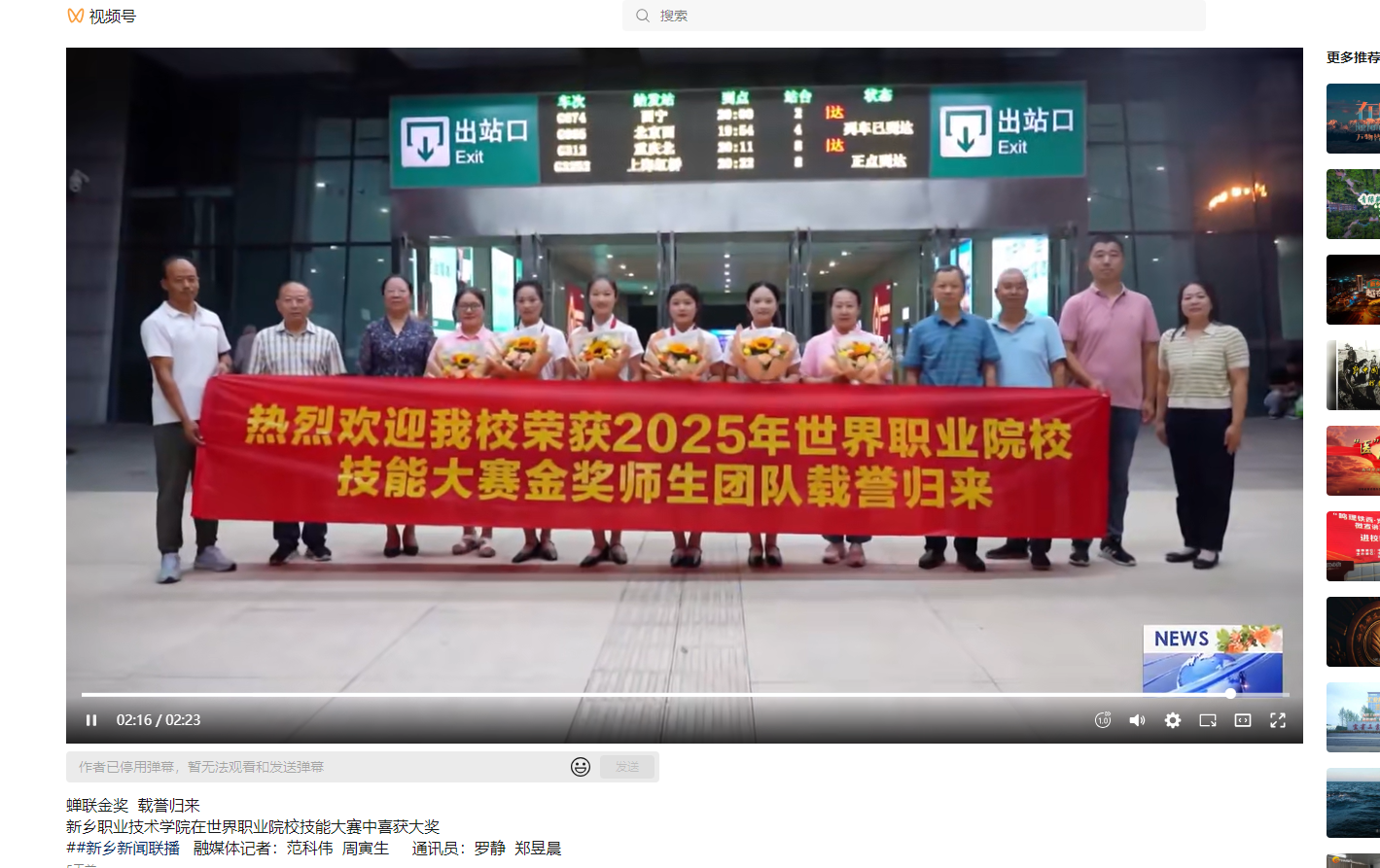 【新乡广播电视台】蝉联金奖 载誉归来新乡职业技术学院在世界职业院校技能大赛中喜获大奖