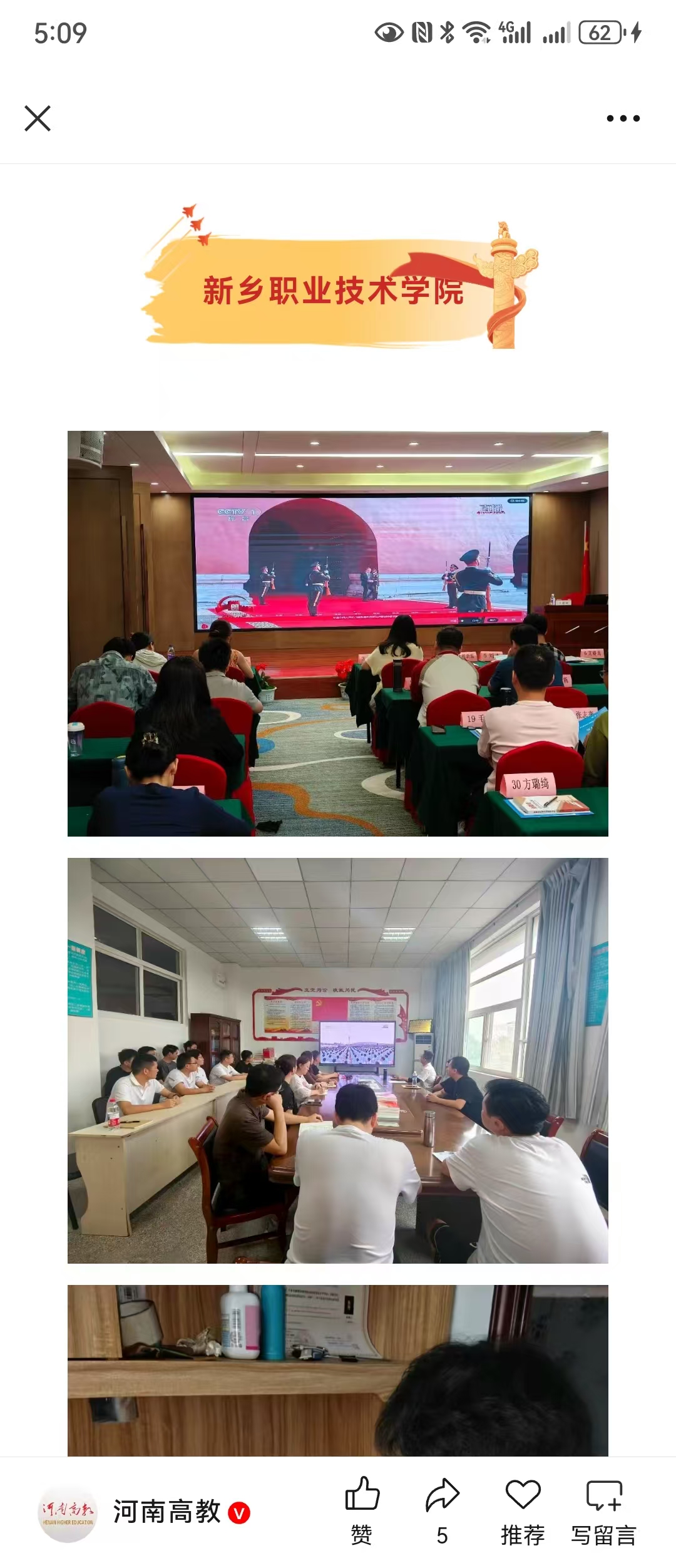 【河南高教】关注!河南高职院校组织师生收看纪念中国人民抗日战争暨世界反法西斯战争胜利80周年大会(二)
