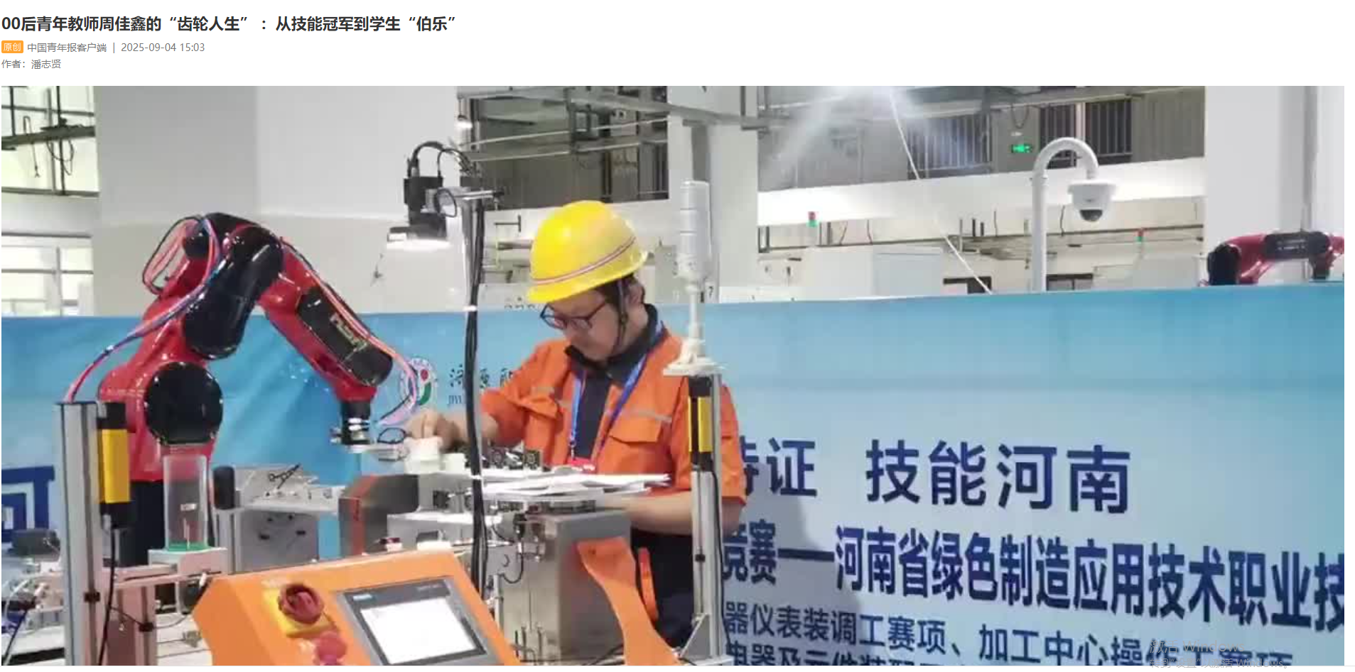 【中国青年报】00后青年教师周佳鑫的“齿轮人生” :从技能冠军到学生“伯乐”