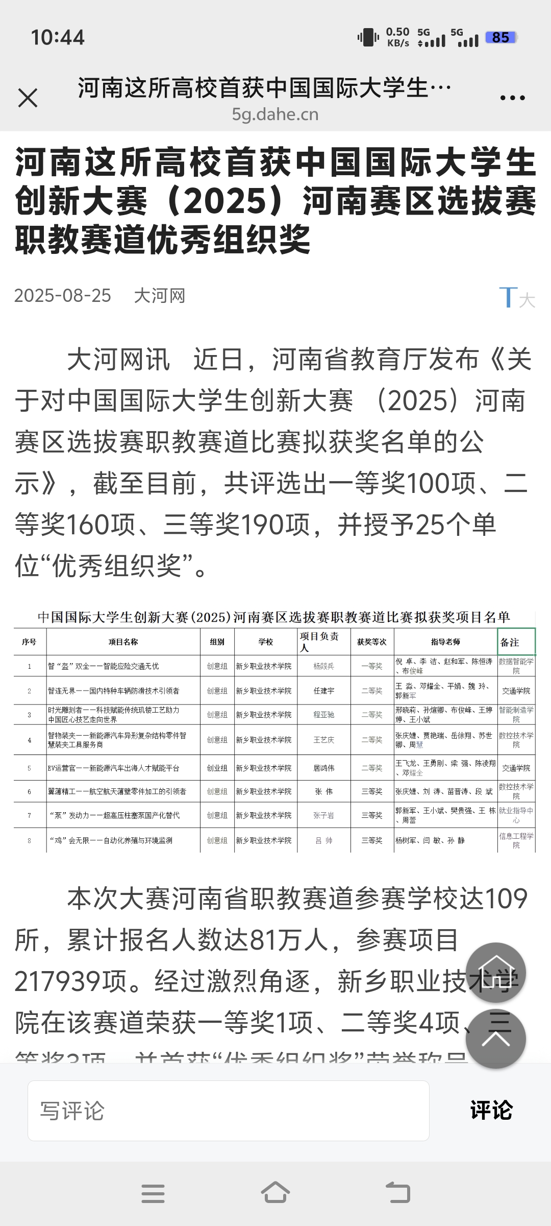 【大河网】河南这所高校首获中国国际大学生创新大赛(2025)河南赛区选拔赛职教赛道优秀组织奖