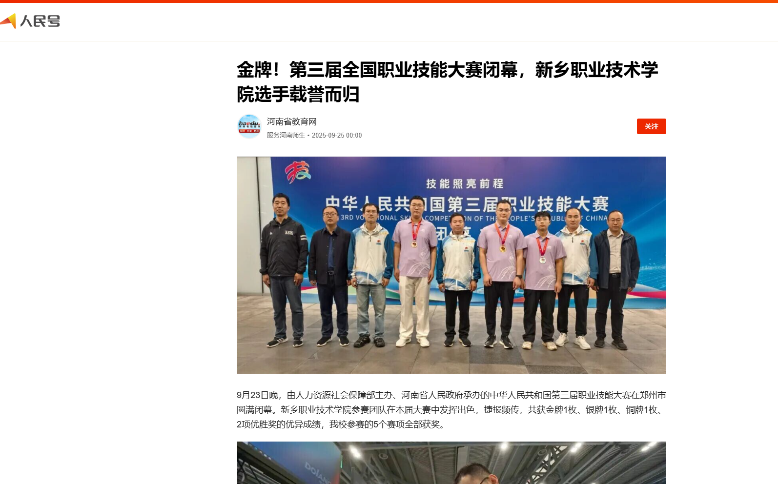 【人民日报】金牌!第三届全国职业技能大赛闭幕,新乡职业技术学院选手载誉而归。