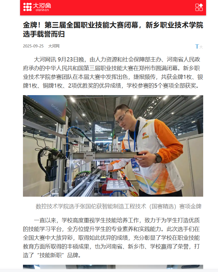 【大河网】金牌!第三届全国职业技能大赛闭幕,新乡职业技术学院选手载誉而归。