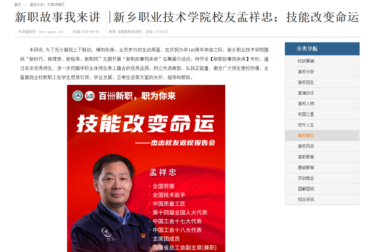 【中华高校网】新职故事我来讲|新乡职业技术学院校友孟祥忠:技能改变命运