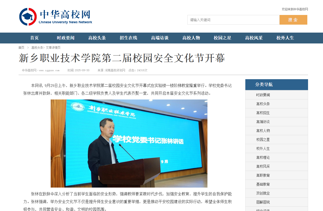 【中华高校网】新乡职业技术学院第二届校园安全文化节开幕