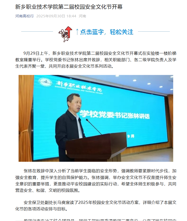【河南高校行】新乡职业技术学院第二届校园安全文化节开幕